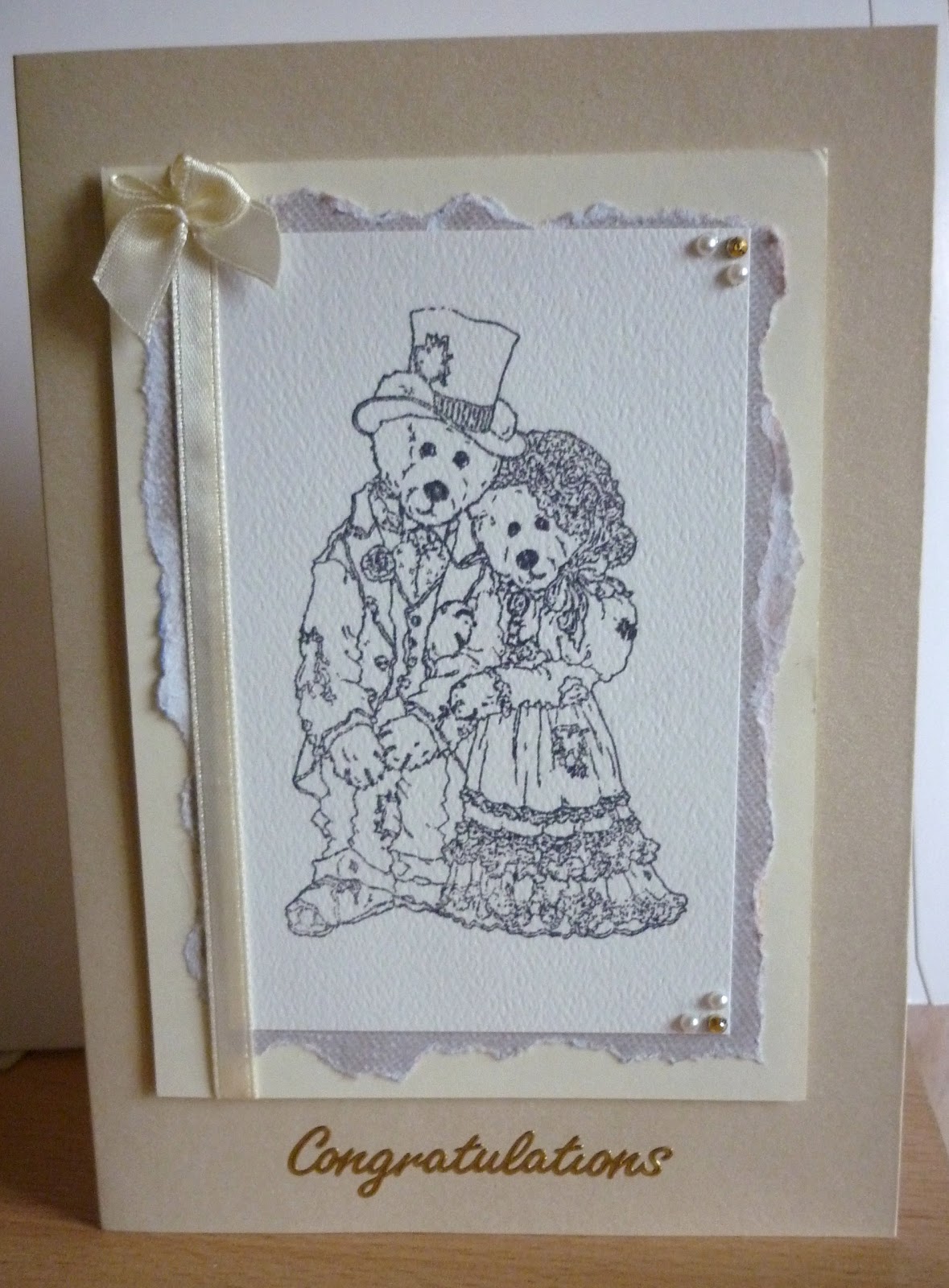 One of my groups swaps is to make a card with a teddy bear featured on it, I started one off with a stamp I have, then remembered I had this stamped image from a bits and bobs swap hoarded away somewhere. It took ages to find it! (and this is after I 'tidied' my craft up *g*)